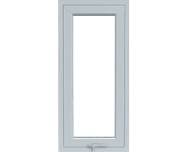 Model ini hampir sama dengan Jendela UPVC model Pivot jika dilihat dari segi efektifitas udara dan cahaya maupun tumpuan engsel, perbedaannya adalah udara yang keluar lebih sedikit dibandingkan jendela pivot yang memiliki dua aliran udara ketika jendela terbuka.